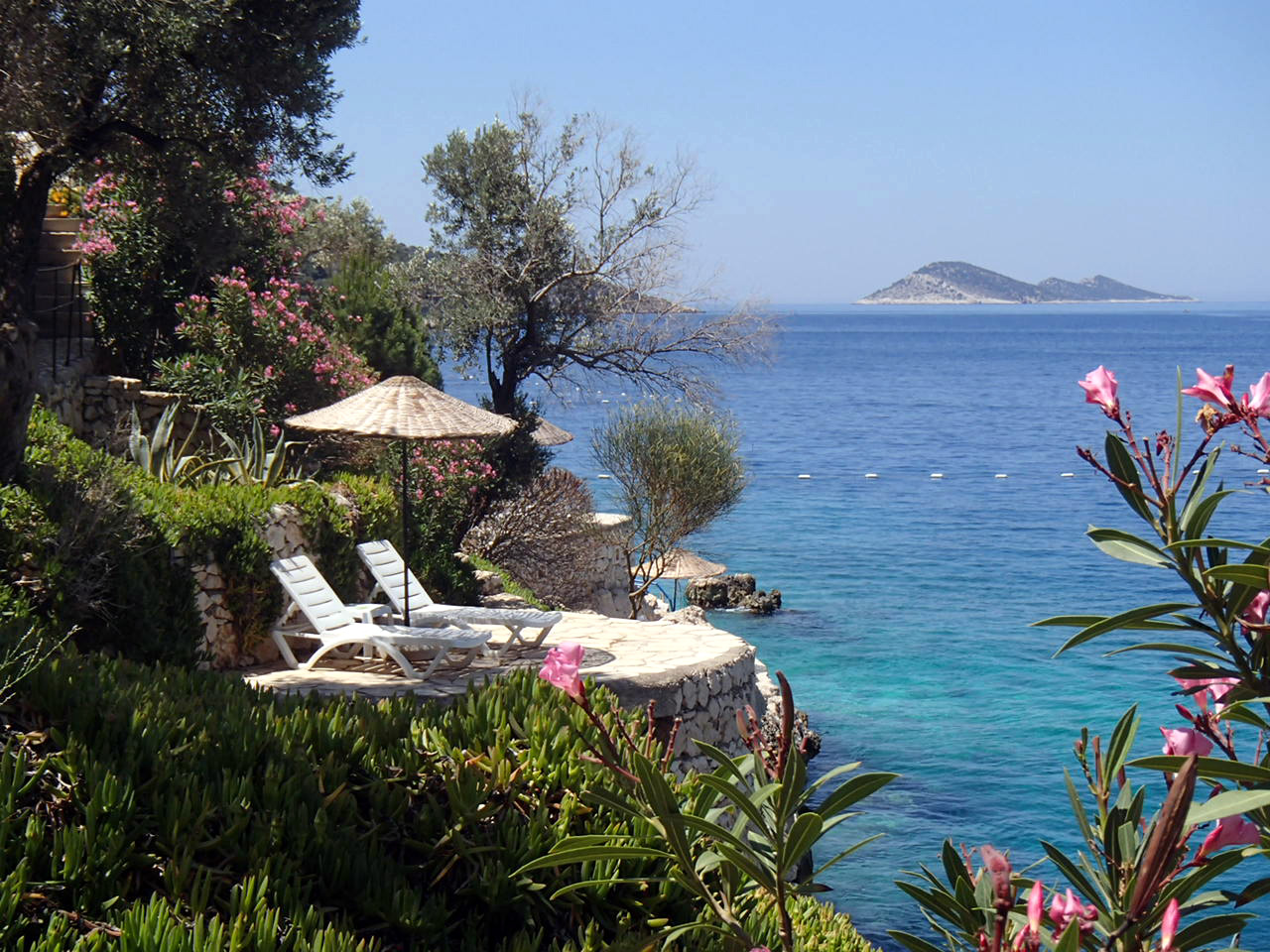 Secluded sunbathing terraces with sea access